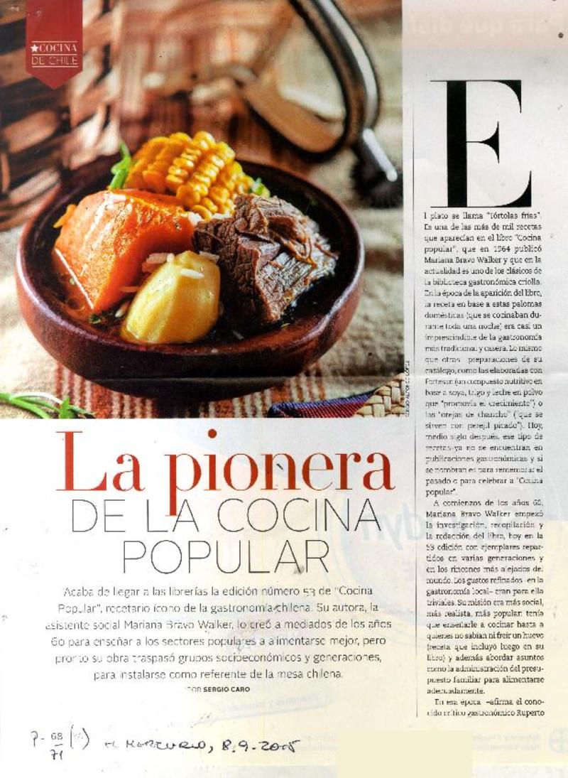 La pionera de la cocina popular [artículo] Sergio Caro.
