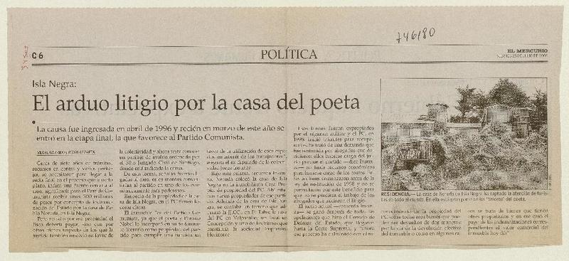 El arduo litigio por la casa del poeta [artículo] Meche Garrido y Pedro Lezaeta.