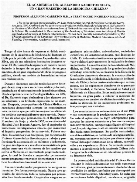 El Doctor Alejandro Garretón Silva [artículo] Luis Herve L.