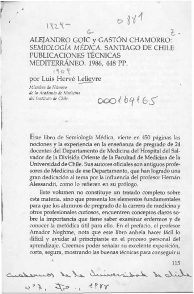 Alejandro Goic y Gastón Chamorro, "Semiología Médica" [artículo] Luis Hervé Lelievre.