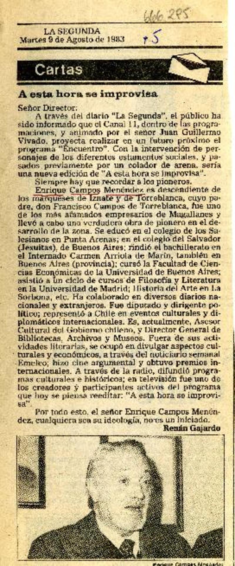 A esta hora se improvisa [artículo] Renán Gajardo.