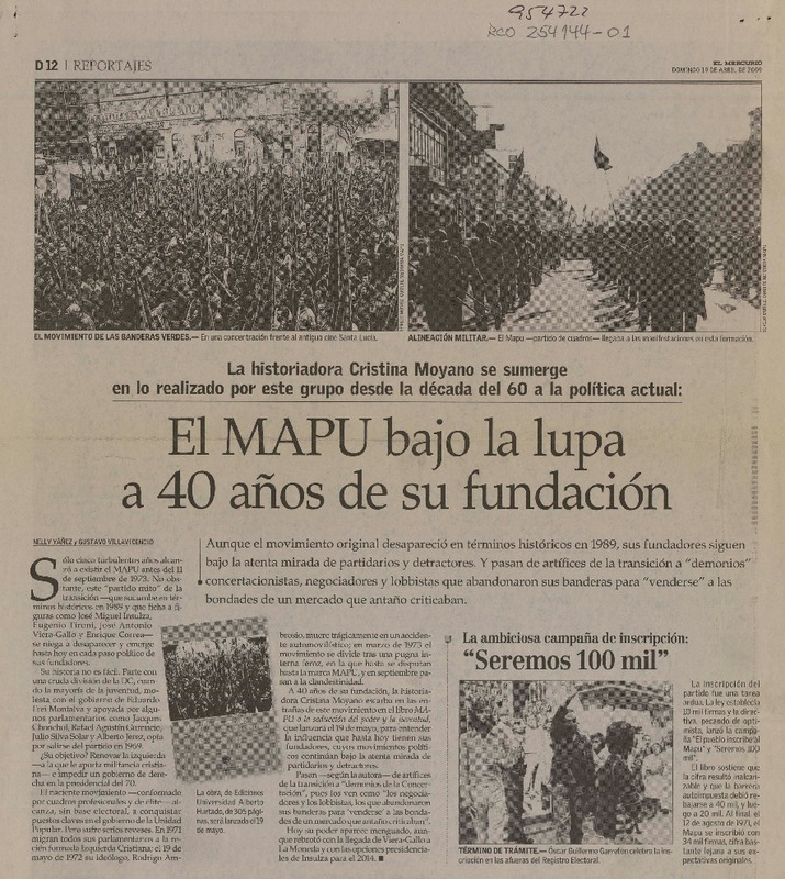 El MAPU bajo la lupa a 40 años de su fundación [artículo] Nelly Yáñez y Gustavo Villavicencio.