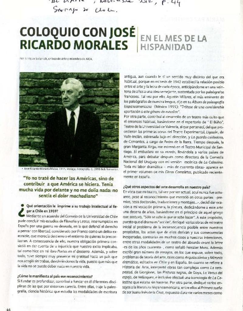 Coloquio con José Ricardo Morales [artículo]Enrique Solanich