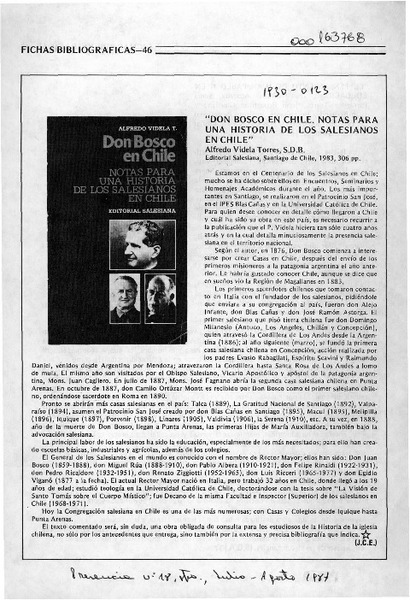 "Don Bosco en Chile, notas para una historia de los salesianos en Chile" [artículo] J. C. E.
