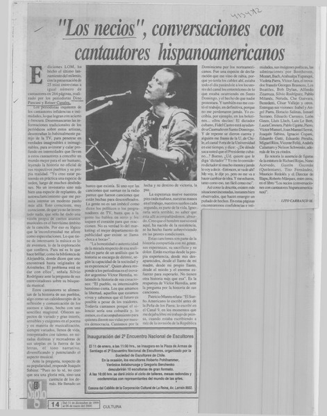 "Los necios", conversaciones con cantautores hipanoamericanos Lito Carrasco M.