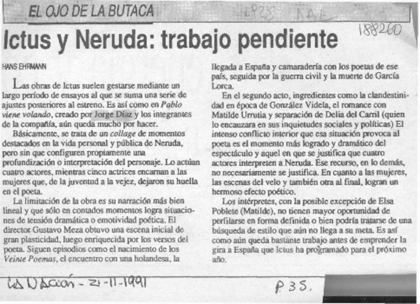 Obra sin dramaturgo [artículo] Hans Ehrmann.