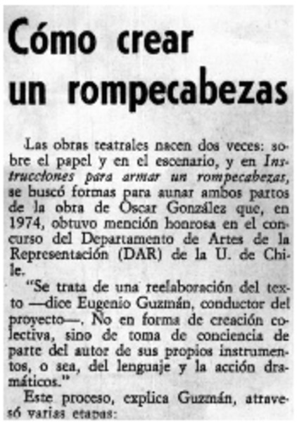 Autores chilenos - González Campos, Oscar - Instrucciones para armar un rompecabezas