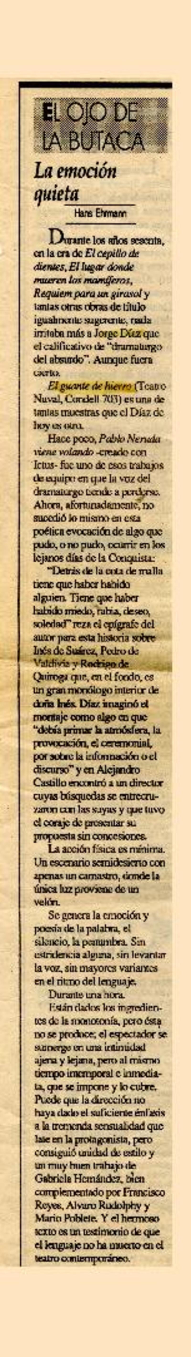Actuación visceral [artículo] Hans Ehrmann.