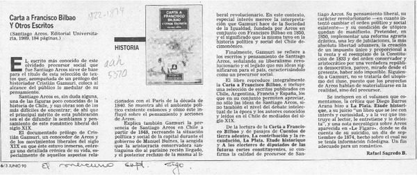 Carta a Francisco Bilbao y otros escritos [artículo] Rafael Sagredo B.