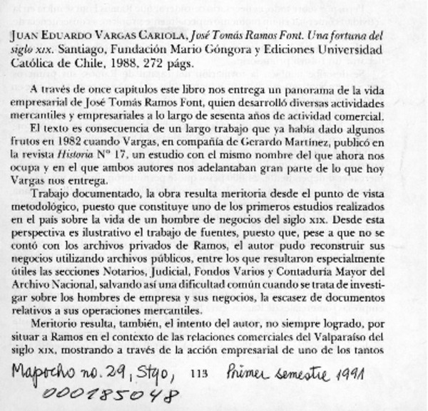 José Tomás Ramos Font, una fortuna del siglo XIX [artículo] Rafael Sagredo Baeza.