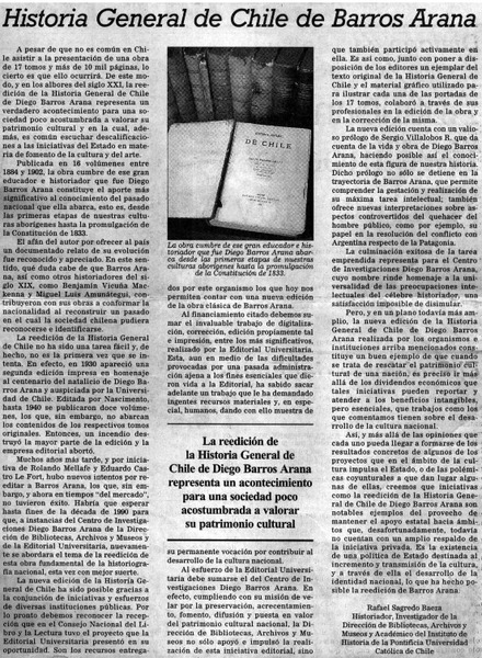 Historia General de Chile de Barros Arana [artículo] Rafael Sagredo Baeza