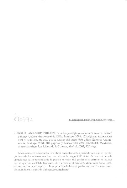 El orden prodigioso del mundo natural [artículo] Rafael Sagredo Baeza