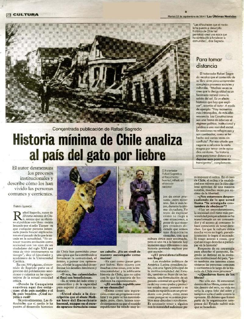 Historia mínima de Chile analiza al país del gato por liebre [entrevista] [artículo] : Fabián Llanca.