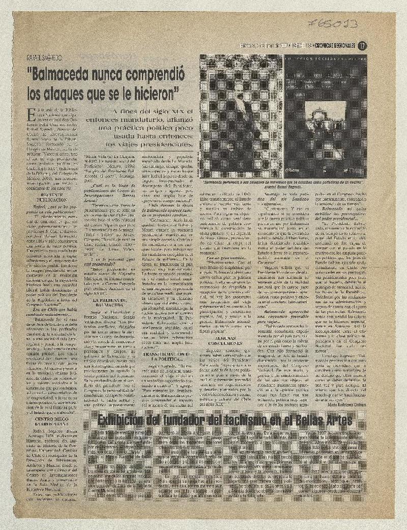 Balmaceda nunca comprendió los ataques que se le hicieron" [artículo] Mario Rodríguez Ordenes.