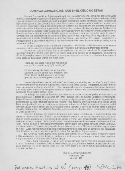 Domingo Gómez Rojas, que en el cielo no estás [artículo] José G. Martínez Fernández