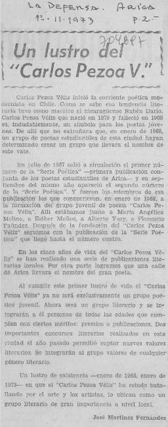 Un lustro del "Carlos Pezoa V." [artículo] José Martínez Fernández.