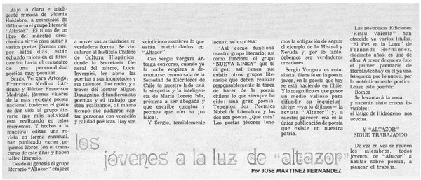 Los jóvenes a la luz de "altazor" [artículo] Por José Martínez Fernández.