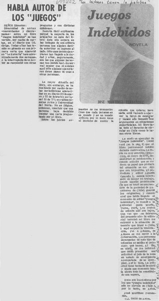 Habla autor de los "juegos" [artículo] José Martínez Fernández.