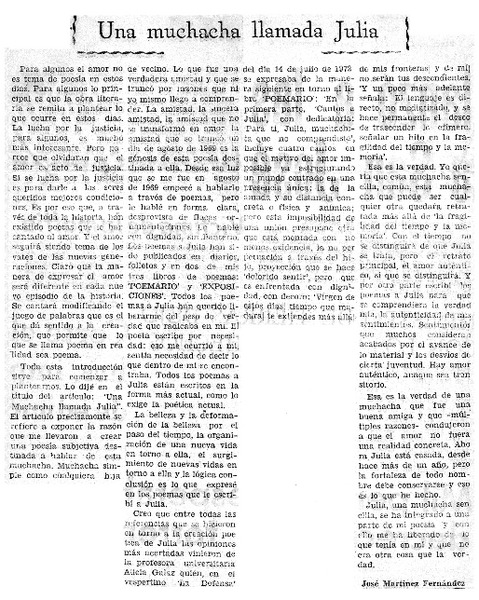 Una muchacha llamada Julia [artículo] José Martínez Fernández.
