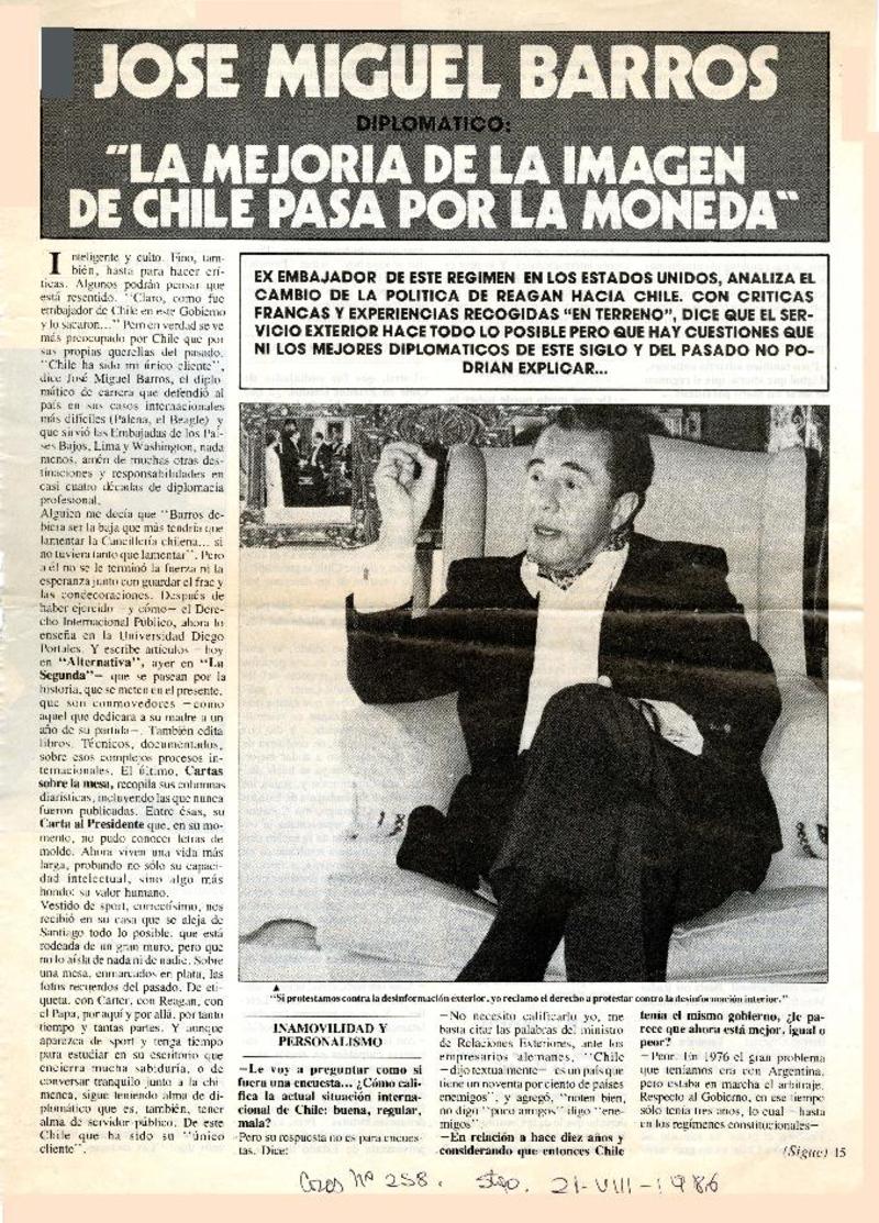 José Miguel Barros diplomático, "La mejoría de la imagen de Chile pasa por La Moneda" [artículo] Raquel Correa.