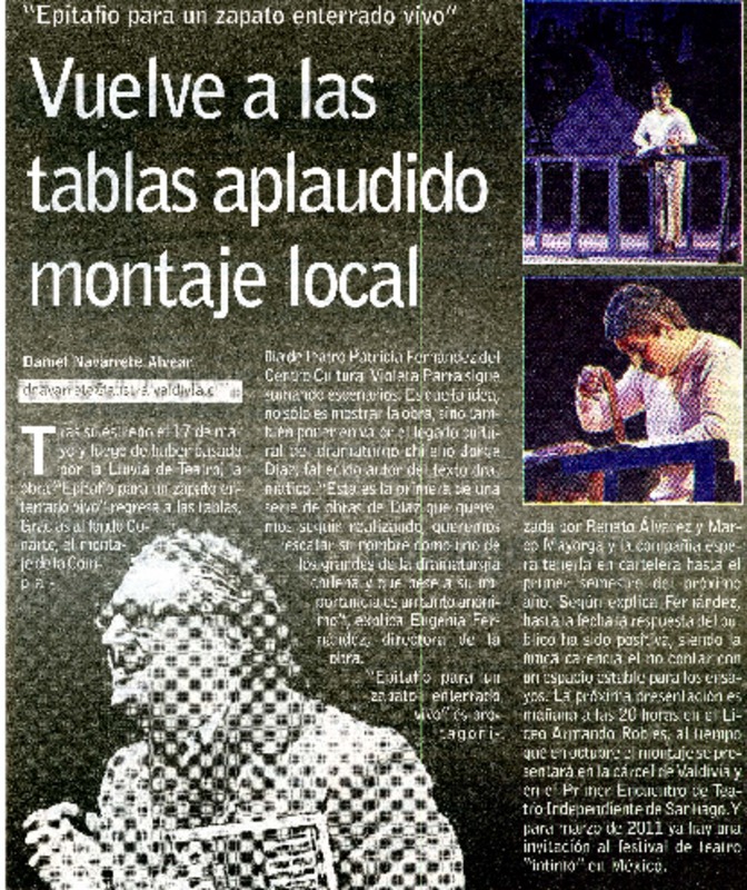 Vuelve a las tablas aplaudido montaje local [artículo] Daniel Navarrete Alvear.