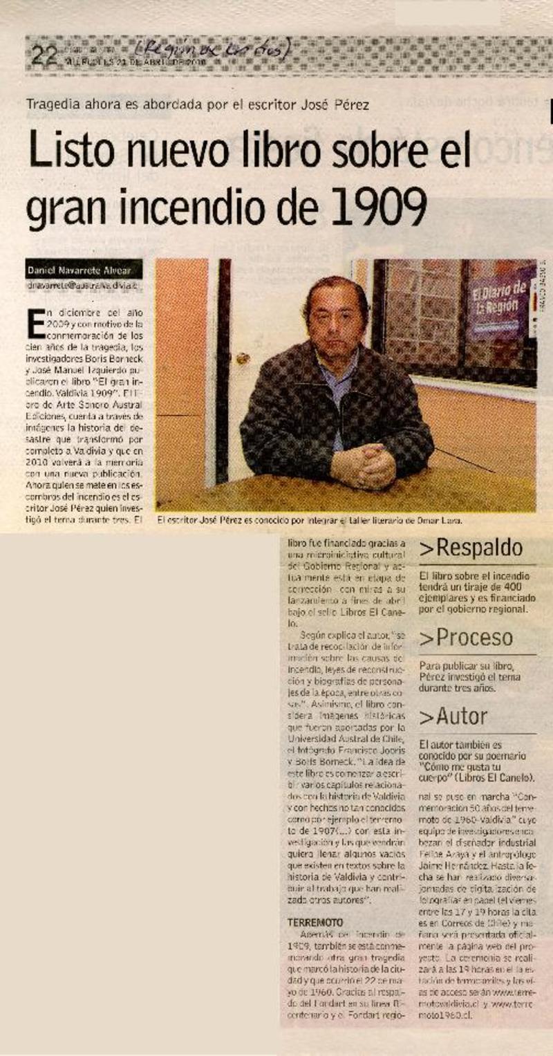Listo nuevo libro sobre el gran incendio de 1909 [artículo] Daniel Navarrete Alvear.