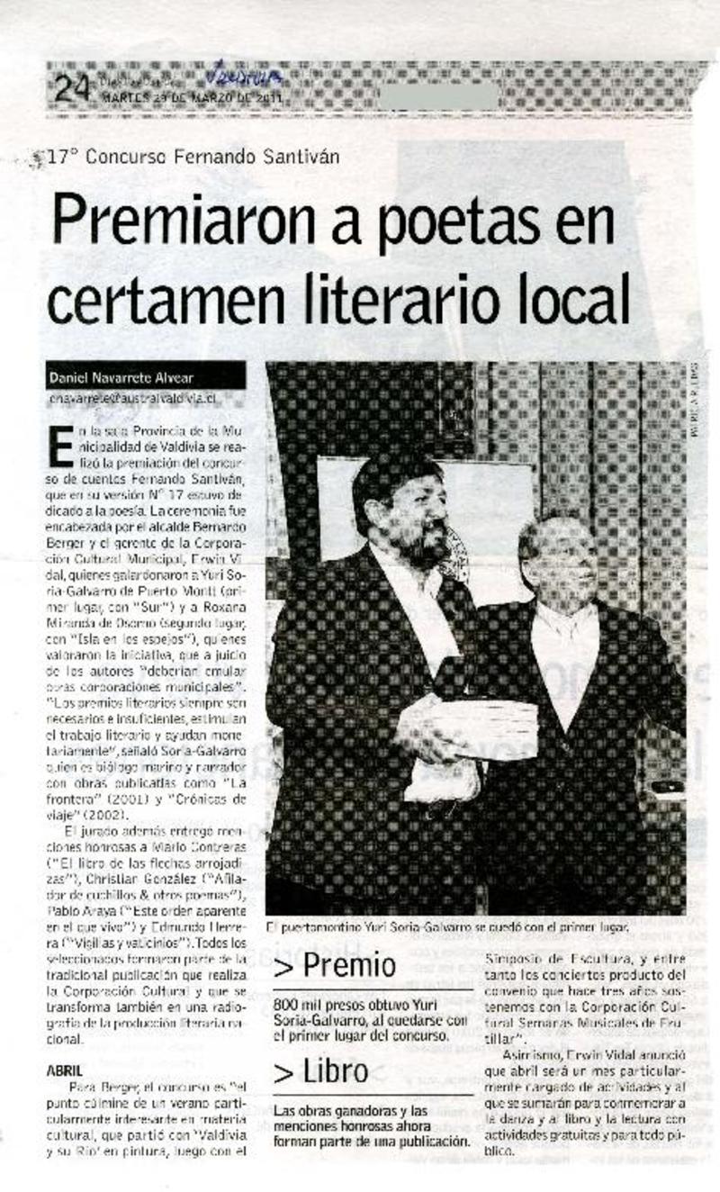 Premiaron a poetas en certamen literario local [artículo] Daniel Navarrete Alvear.