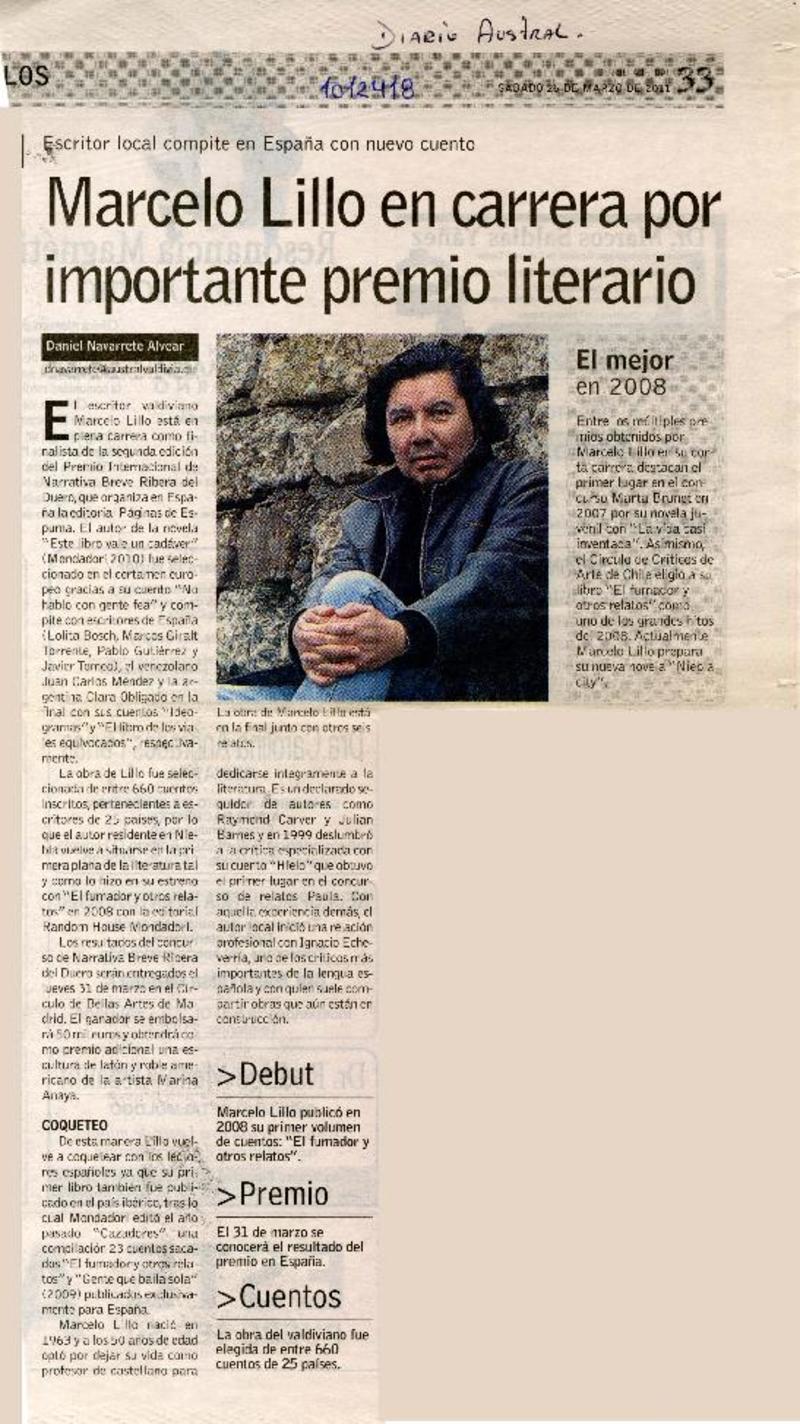 Marcelo Lillo en carrera por importante premio literario [artículo] Daniel Navarrete Alvear.