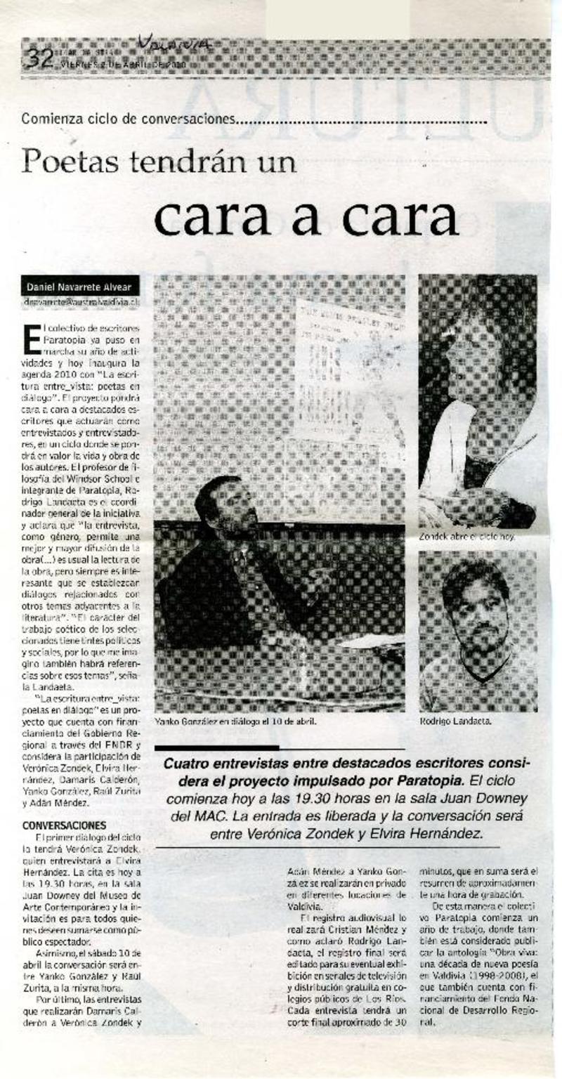 Poetas tendrán un cara a cara [artículo] Daniel Navarrete Alvear.