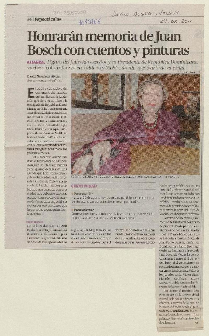 Honrarán memoria de Juan Bosch con cuentos y pinturas [artículo] Daniel Navarrete Alvear.