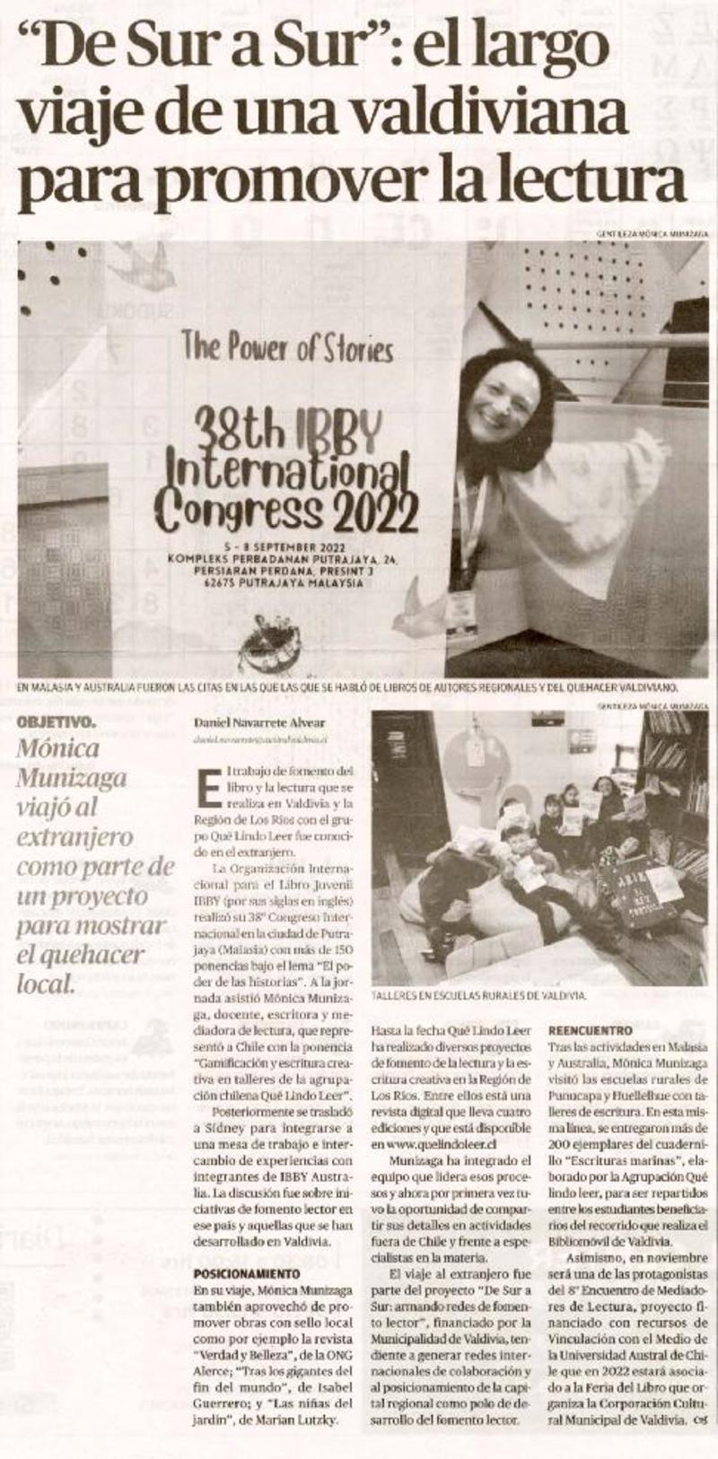 De sur a sur", el largo viaje de una valdiviana para promover la lectura [artículo] Daniel Navarrete Alvear.