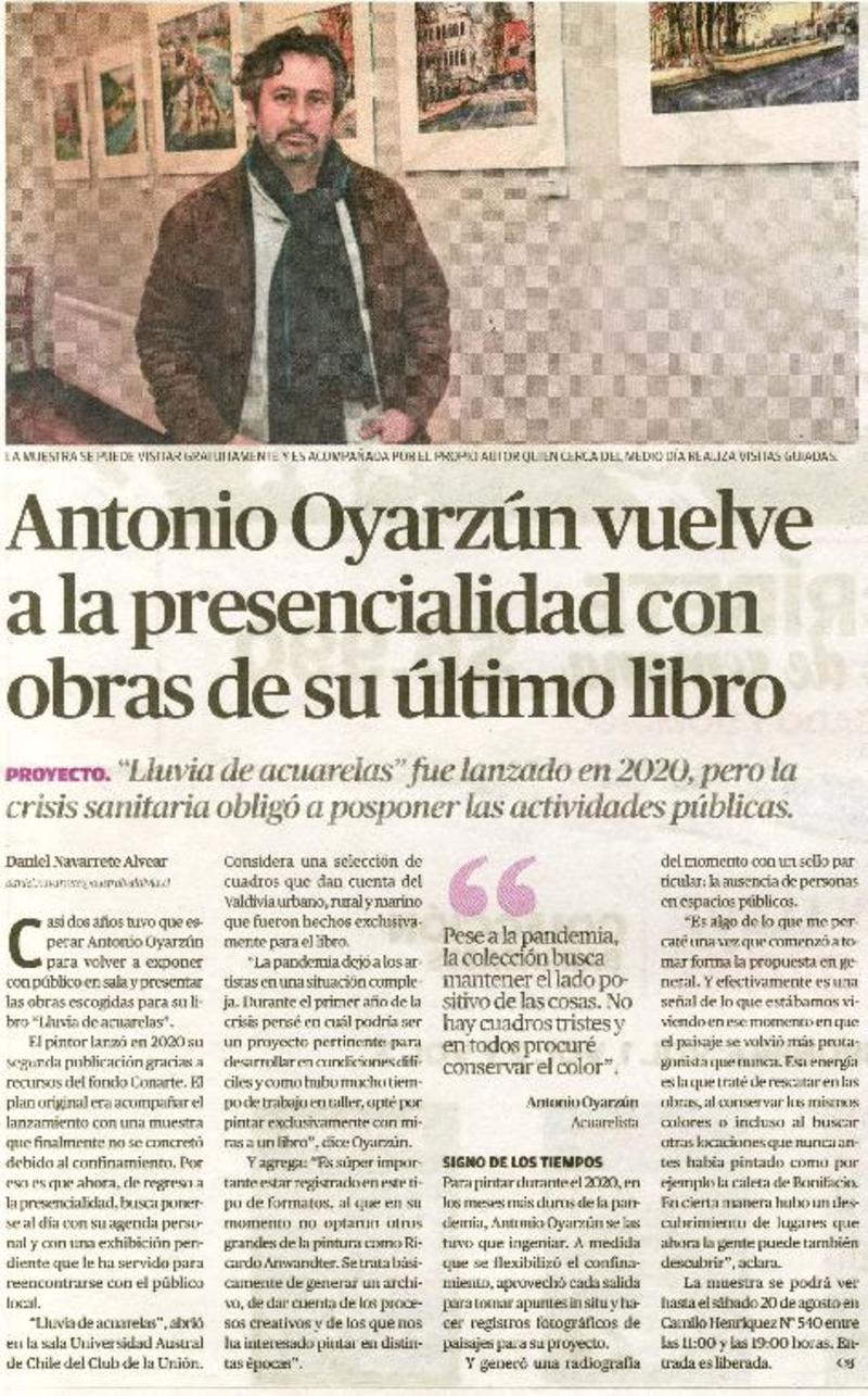Antonio Oyarzún vuelve a la presencialidad con obras de su último libro. [artículo] Daniel Navarrete Alvear.