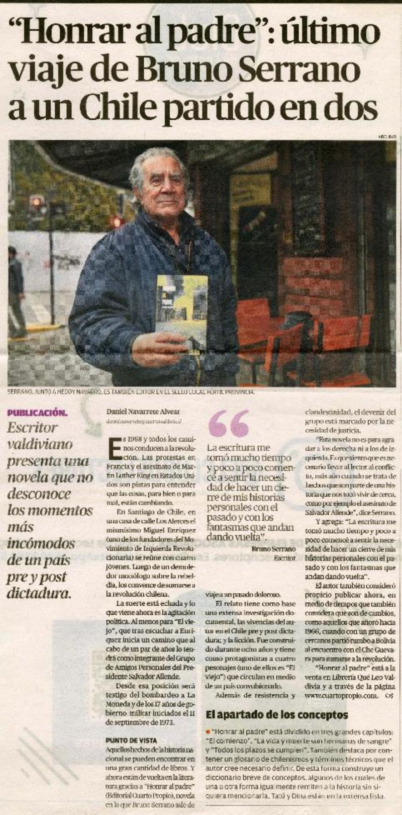 "Honrar al padre" : último viaje de Bruno Serrano a un Chile partido en dos [artículo] Daniel Navarrete Alvear.