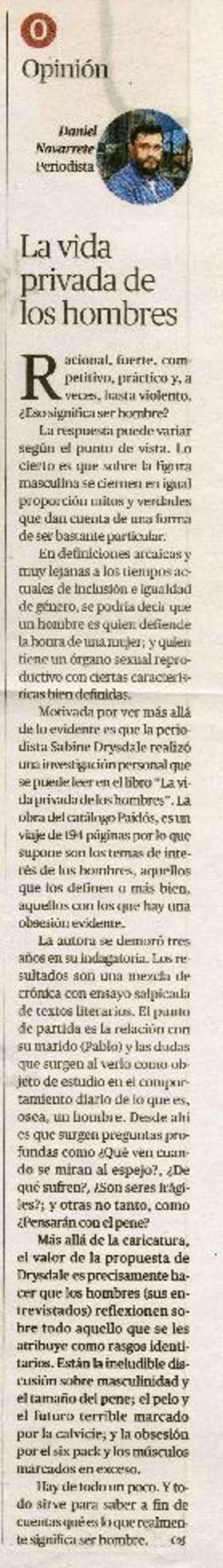 La vida privada de los hombres [artículo] Daniel Navarrete Alvear.