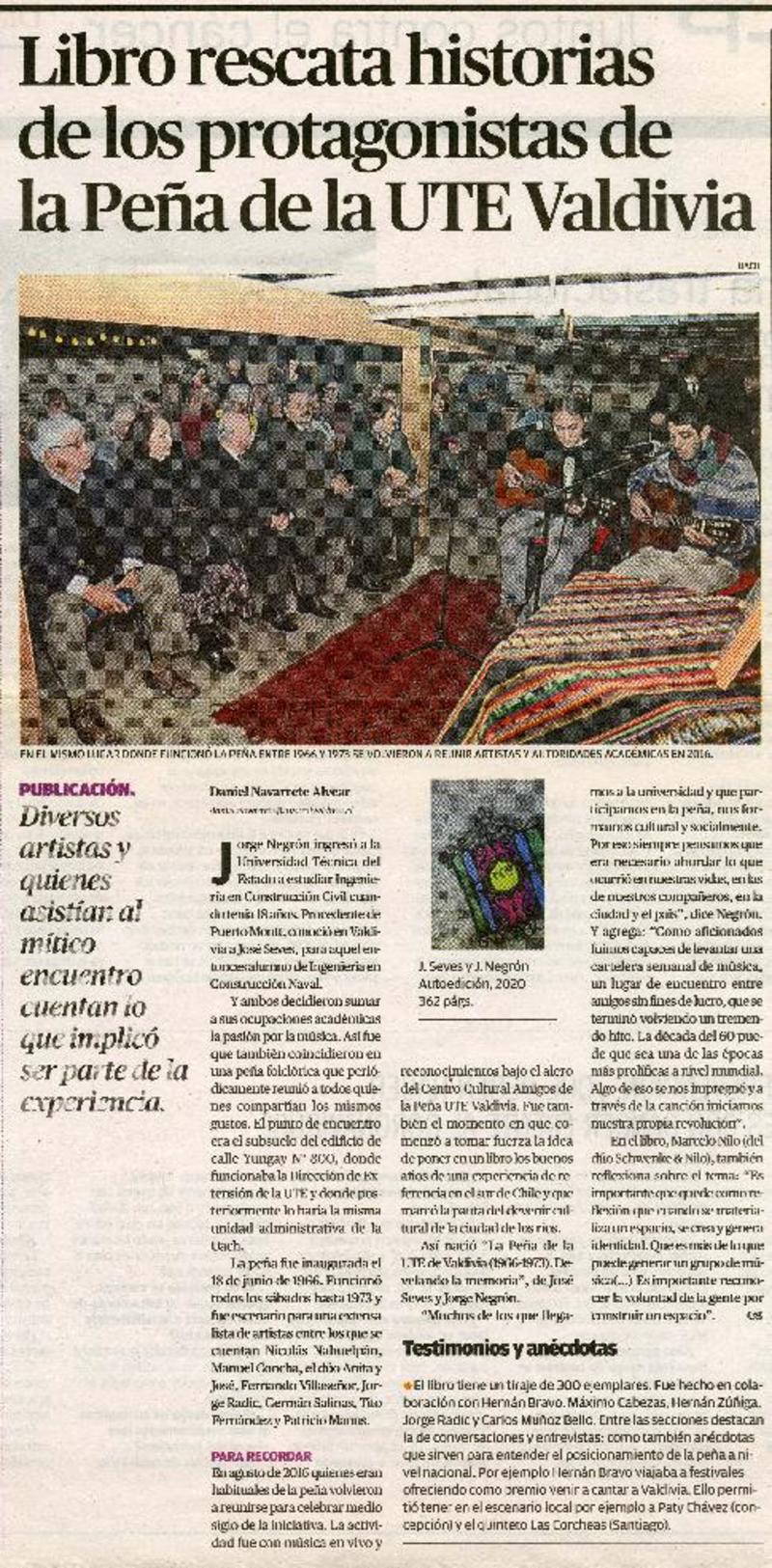 Libro rescata historias de los protagonistas de la Peña de la UTE Valdivia [artículo] Daniel Navarrete Alvear.