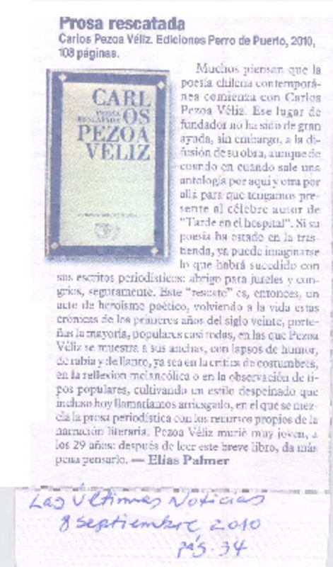 Crónicas reunidas (2) [artículo] Elías Palmer.
