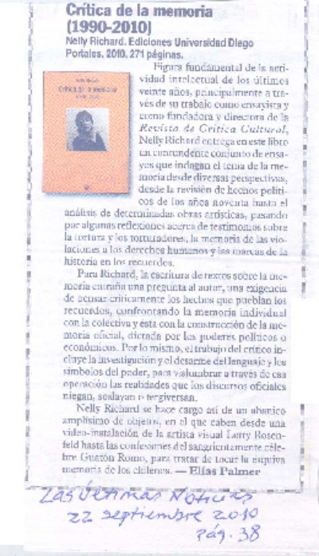 Crítica de la memoria (1990-2000) [artículo] Elías Palmer.