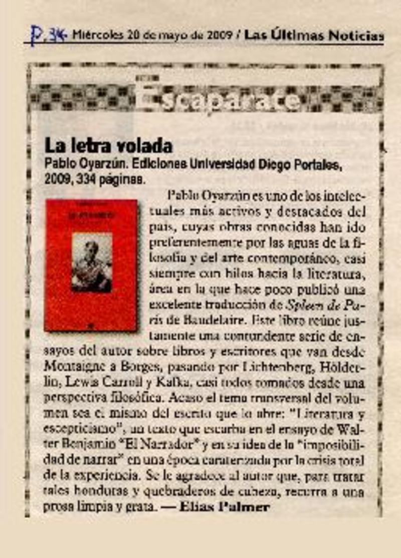 La letra volada [artículo] Elías Palmer.