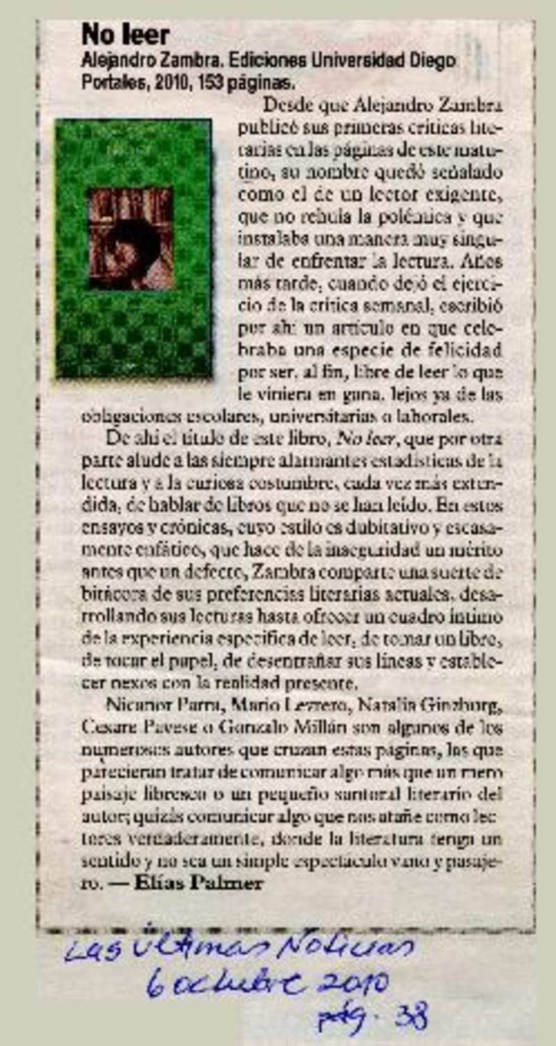 Autores chilenos - Zambra, Alejandro - No leer