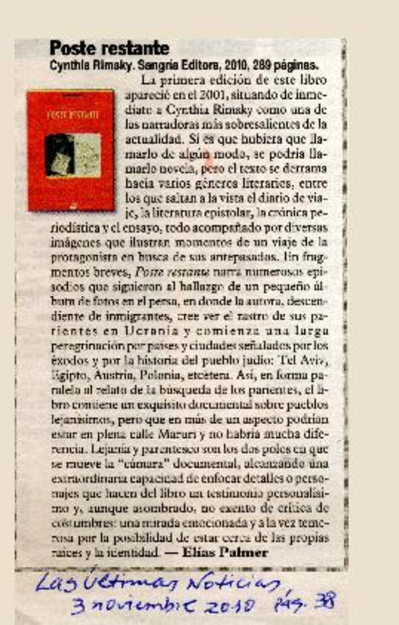 Poste restante [artículo] Elías Palmer.