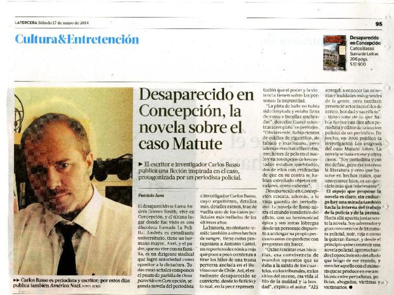 Desaparecido en Concepción, la novela sobre el caso Matute [artículo] Patricio Jara