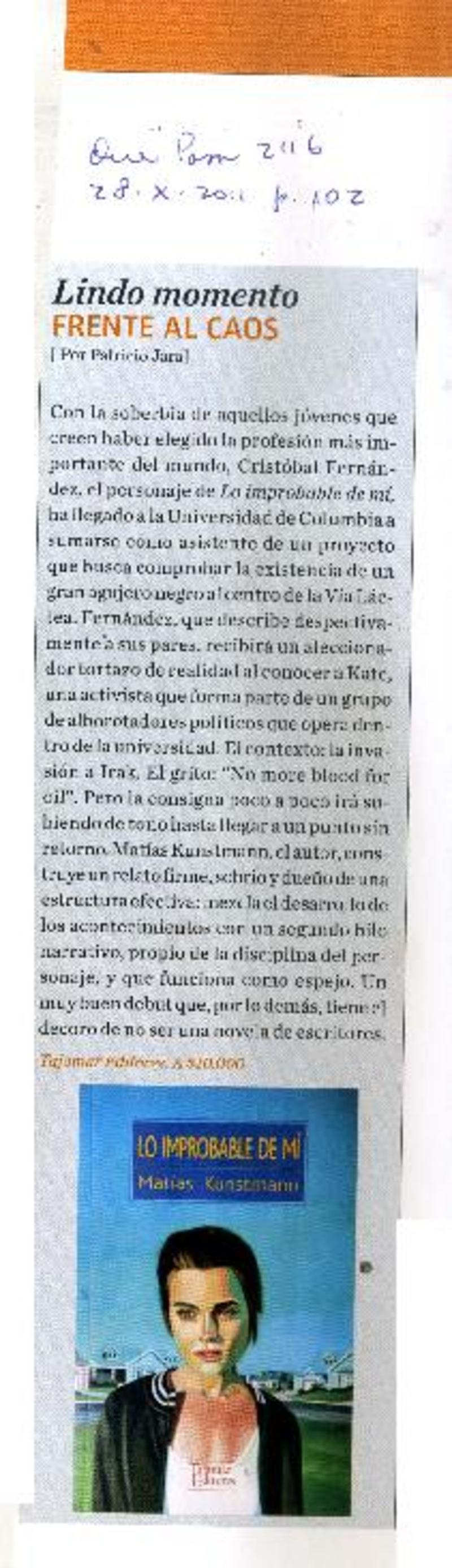 Lindo momento frente al caos [artículo] Patricio Jara.