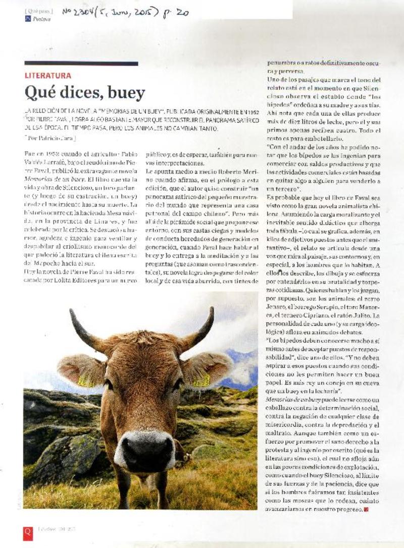 Qué dices, buey [artículo] Patricio Jara.