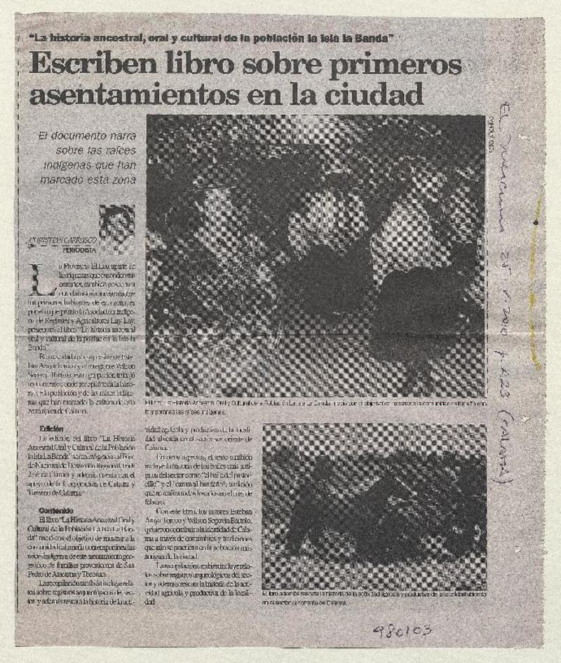 Escriben libro sobre primeros asentamientos en la ciudad [artículo] Christian Carrasco.