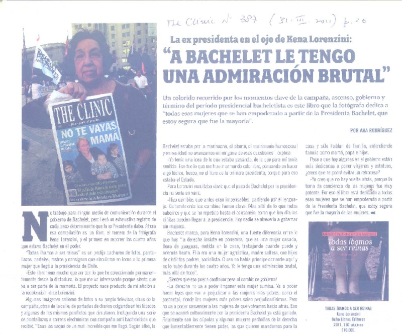 "A Bachelet le tengo una admiración brutal" [artículo] Ana Rodríguez.