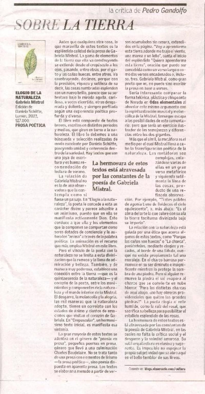 Sobre la tierra [artículo] Pedro Gandolfo.