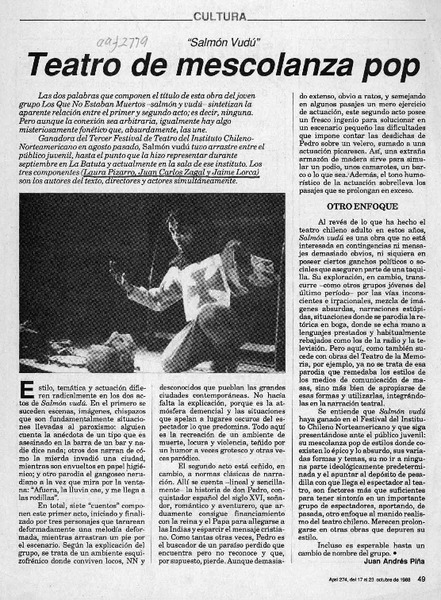 Teatro de mescolanza pop [artículo] Juan Andrés Piña.
