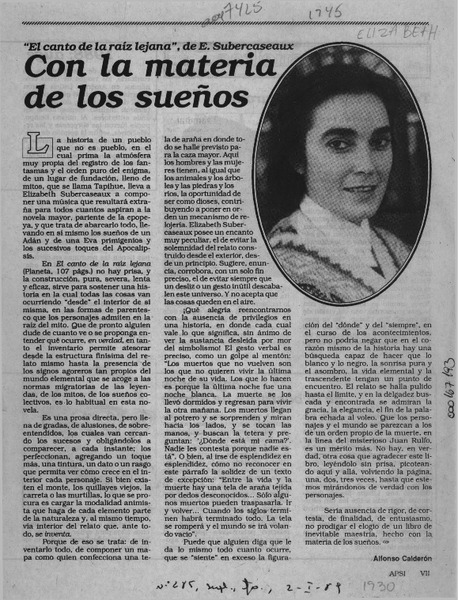 Con la materia de los sueños [artículo] Alfonso Calderón.