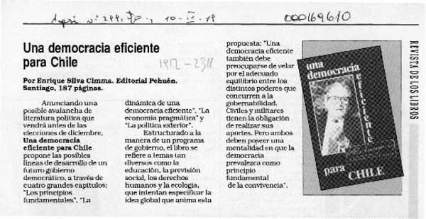 SILVA CIMMA, ENRIQUE - DEMOCRACIA EFICIENTE PARA CHILE, UNA