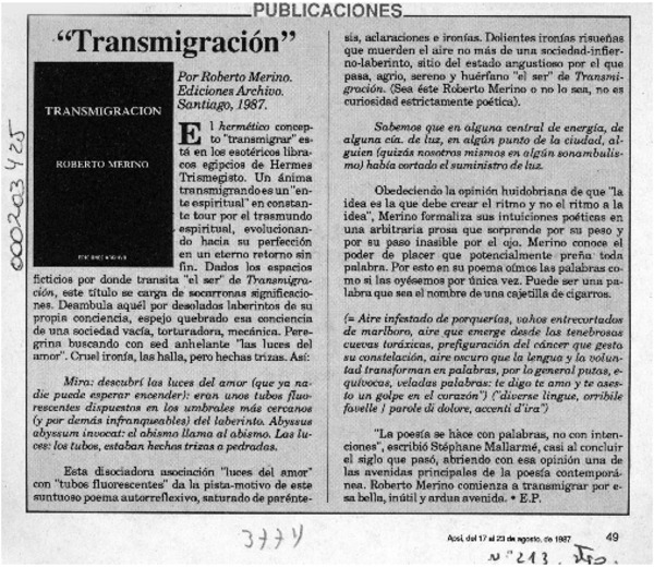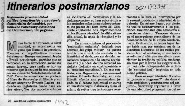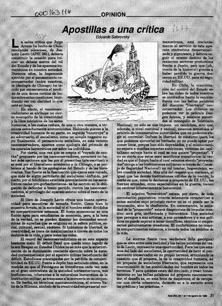Apostillas a una crítica [artículo] Eduardo Sabrovsky.
